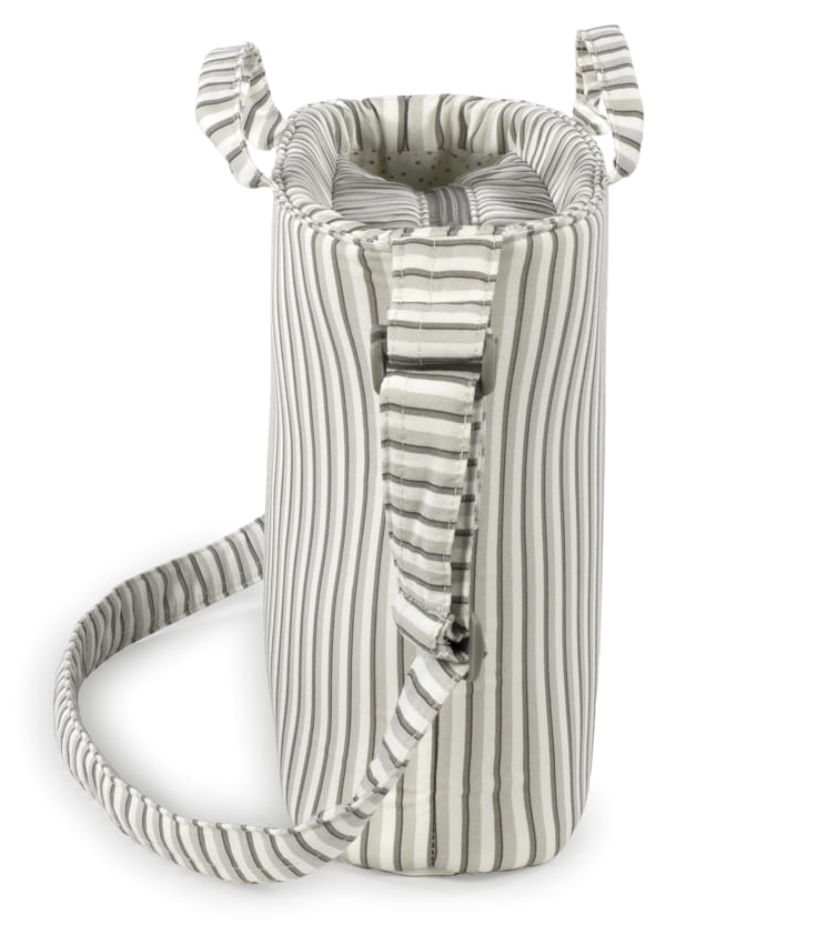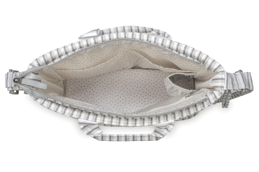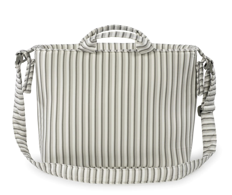Bolsa canastilla modelo Botton Raya de Walking Mum elaborada en algodón 100% y tratamiento waterproof para hacerla resistente al agua. Gran capacidad interior con múltiples bolsillos para organizar todas las cositas de tu bebé y forro protector. Uno de los bolsillos es térmico y otro está plastificado para meter ropa mojada. Los acabados son de alta calidad y la bolsa incluye un práctico cambiador plegable. Lleva doble asa de transporte de mano y una larga para colgar al hombro, además de dos asas de fijación universales para el carrito.