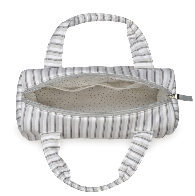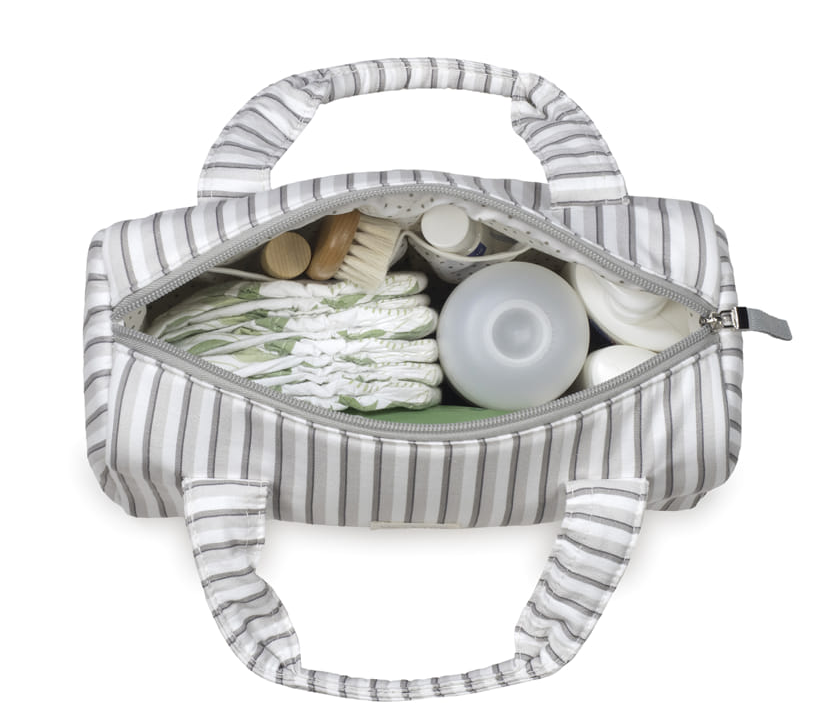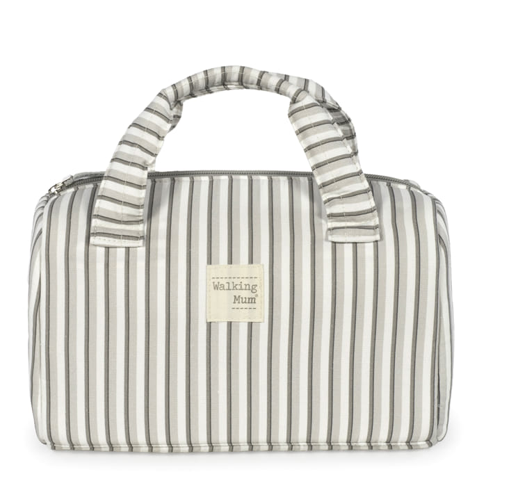 Bolsa mini bag Botton Raya de Walking Mum. Bolsa ideal para llevar todo lo imprescindible para el paseo del bebé. Su diseño simple y cómodo de forma rectangular ofrece comodidad para transportar todos los artículos de tu pequeño. Con cierre seguro de cremallera y dos asas de mano. Modelo universal. 100% algodón con tratamiento waterproof.