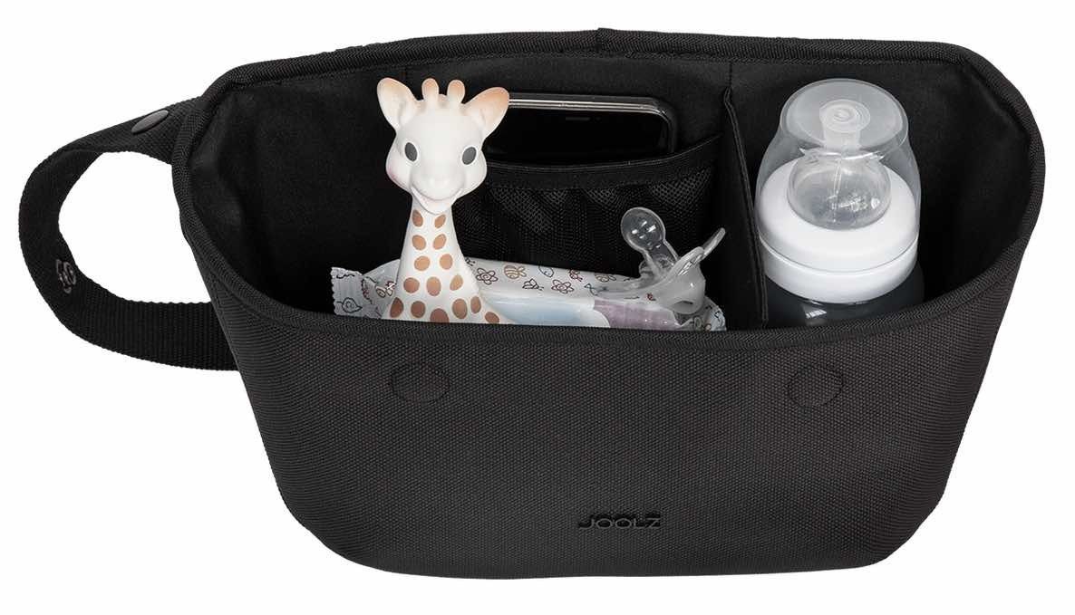 El bolso organizador de Joolz es compatible con la mayoría de carritos de la marca y cuenta con varios compartimentos para que lleves todo lo que necesitéis a vuestros paseos y aventuras. Cuenta con una correa para fijarlo al carrito, un imán para cerrarlo correctamente y es de color negro, a juego con el resto de accesorios y cochecitos de la firma.