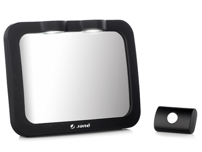 El espejo de seguridad con luz de Jané es universal y te permitirá vigilar a tu bebé de forma sencilla y cómoda mientras va a contramarcha en el asiento trasero. Cuenta con luces LED que se pueden controlar con mando a distancia y encender de manera progresiva. Fabricado en cristal "anti-añicos", evitando que se rompa en caso de colisión. Se sujeta con correas ajustables alrededor del reposacabezas. Gracias a su ángulo de 360º se puede ajustar el campo de visión para lograr una vista perfecta del niño. Medidas 28 x 7 x 20cm.