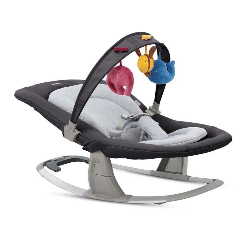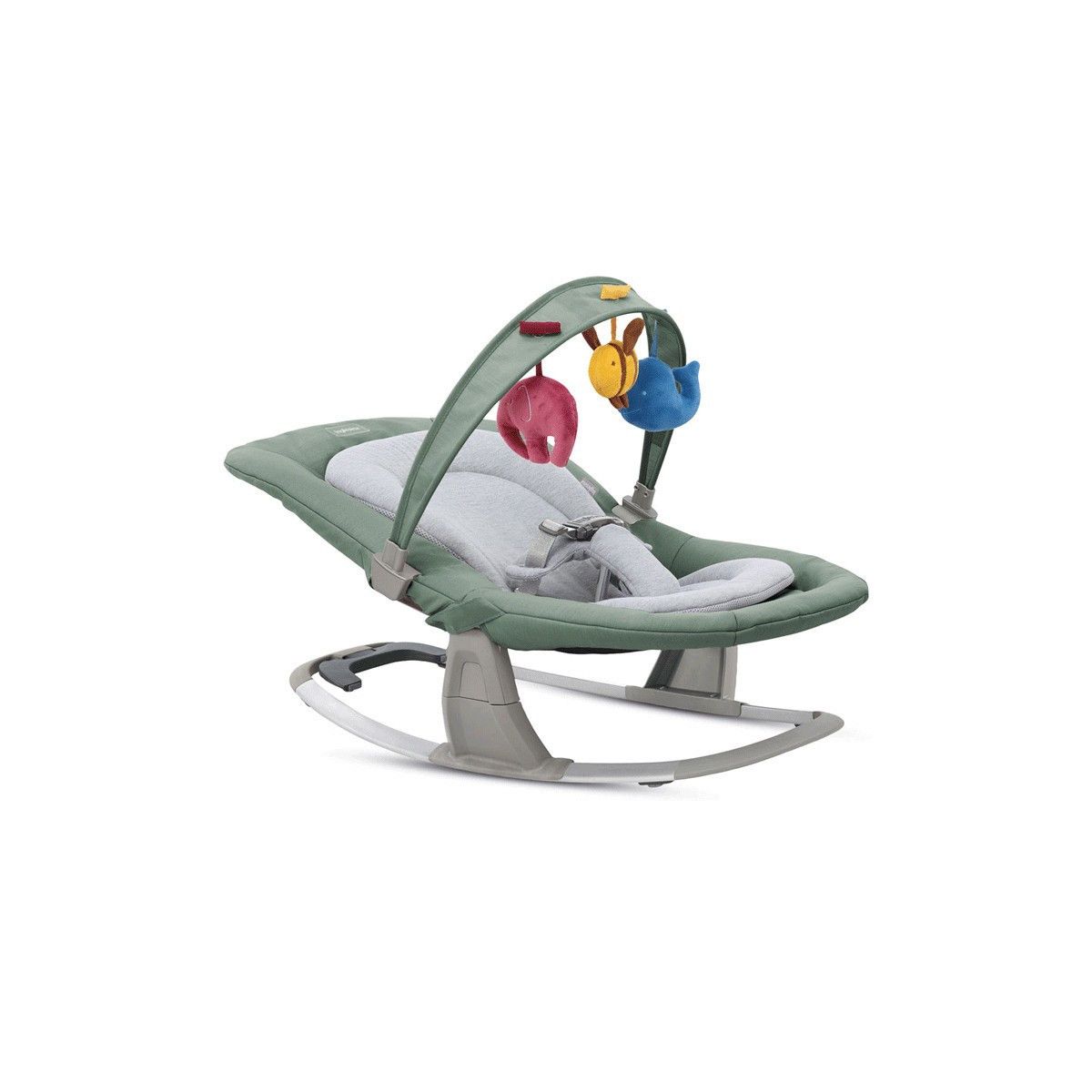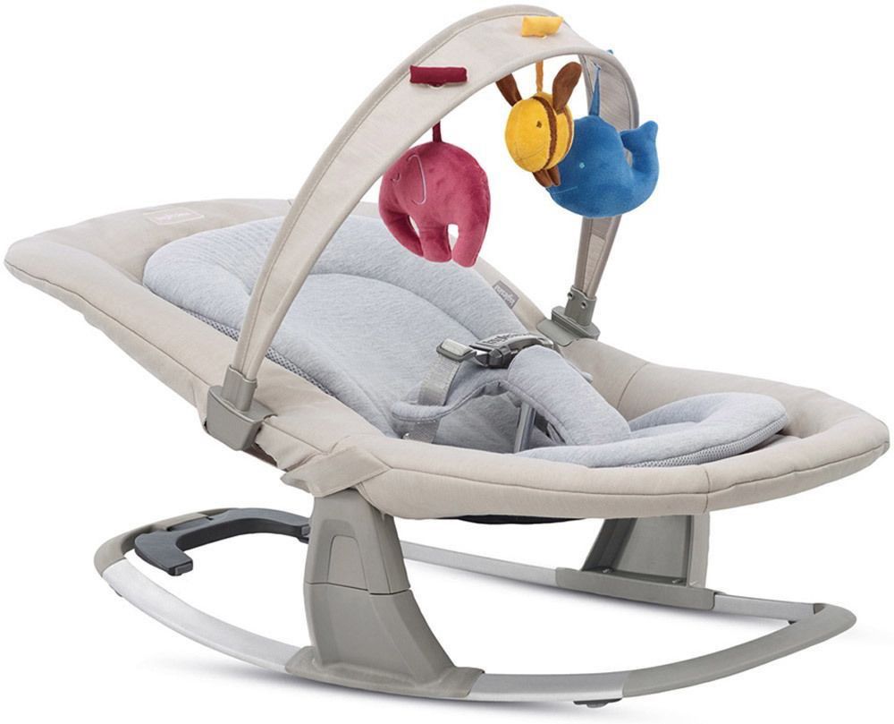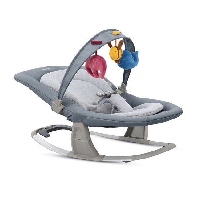 - La barra de juegos puede acoplarse en varias posiciones. Cuenta con 3 peluches con efectos táctiles y sonoros que estimulan el crecimiento psicomotor del niño.