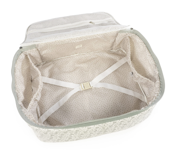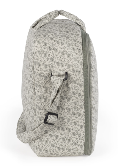 La maleta clínica modelo Gala de Walking Mum es una maleta de hospital pensada para el día del nacimiento de tu bebé. Los bolsillos están organizados para tener todo a mano y que sea cómodo encontrar cualquier cosa. La cremallera es bidireccional para mayor seguridad y fácil apertura. Esta maleta maternal incluye una correa larga para colgar al hombro, además de asas cortas de mano. Su interior cuenta con forro y gomas para sujetar todos los accesorios. Material 100% algodón con tratamiento waterproof. Medidas: 49X37X17 cm.