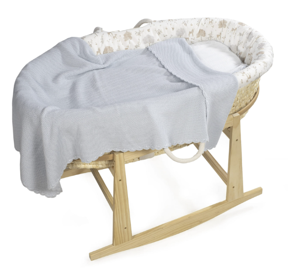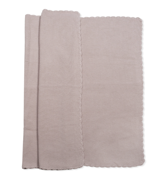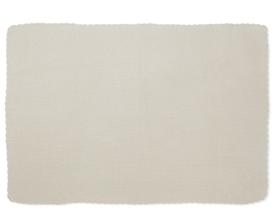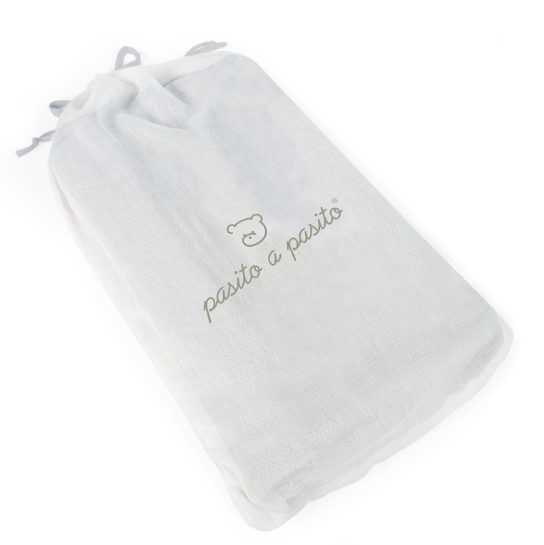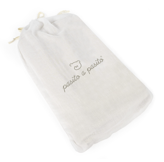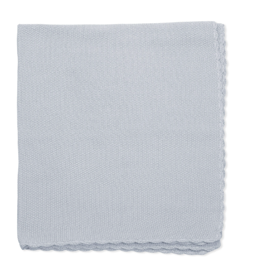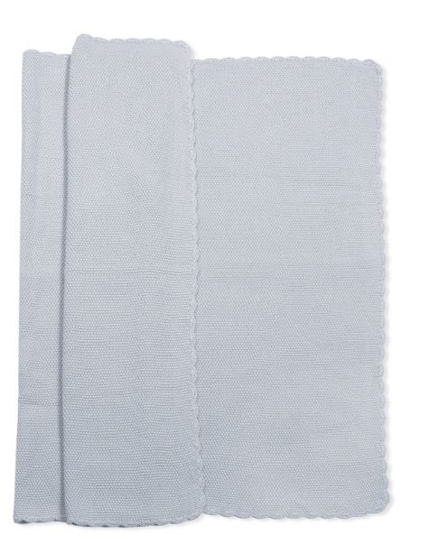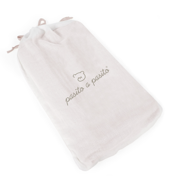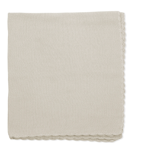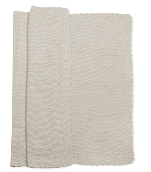 Manta Tricot de Pasito a Pasito confeccionada en tricot 100% algodón con un delicado punto de arroz y elegante acabado de crochet en ondas. Ideal para el carrito, la cuna o los paseos. Incluye bolsa de hilo con logo, ideal para regalar. Medidas: 75 x 100cm.