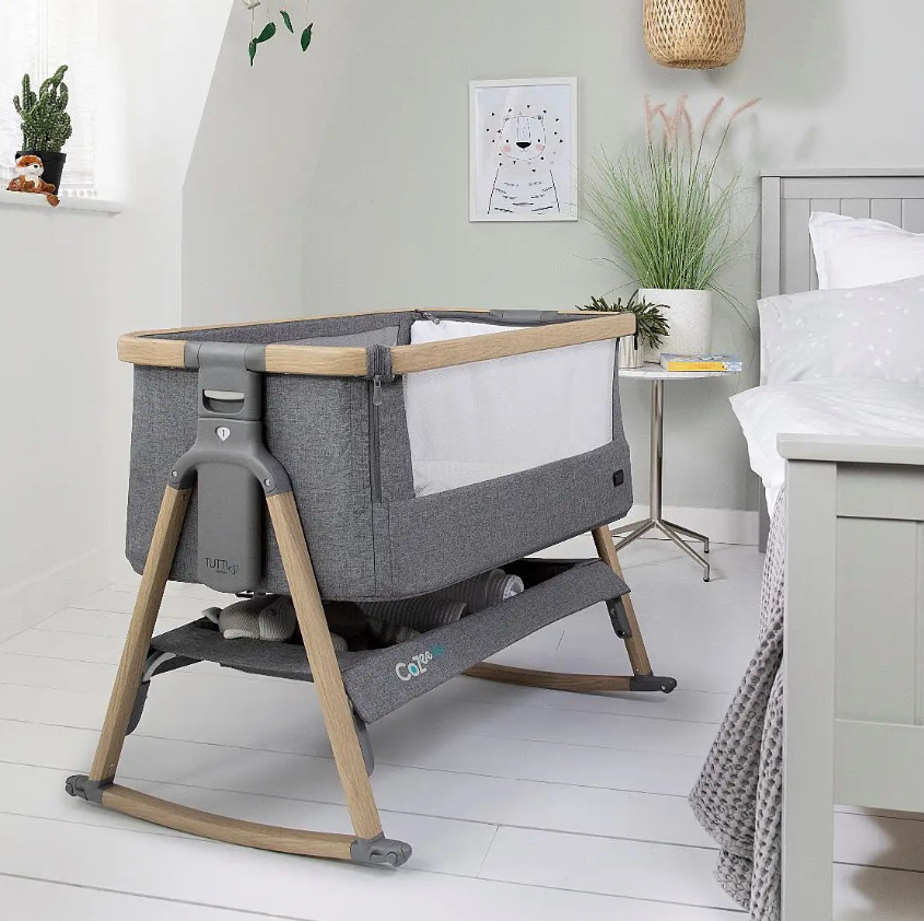 Minicuna de colecho Cozee Air de Tutti Bambini perfecta para que tu bebé duerma a tu lado o de forma más independiente. Viene equipado con Cuna de cabecera CoZee Air con colchón transpirable, correas de seguridad para colecho, bolsa de transporte, barras mecedoras y ruedas bloqueables. Dispone de 6 alturas y un accesorio con barras mecedoras bloqueables para ayudar a calmar a tu bebé y facilitar su sueño. Cuenta con un estante en la parte inferior para que tengas a mano todo lo que necesitéis tu bebé y tú.