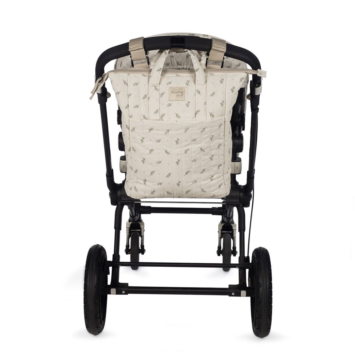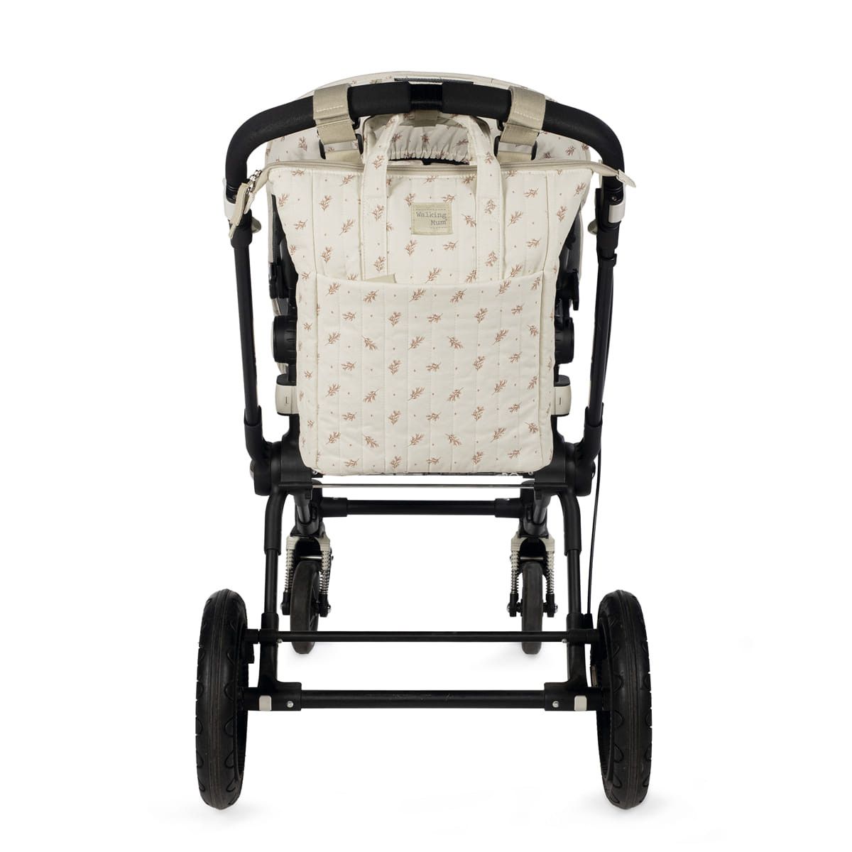 Mochila maternal Mimosa de Walking Mum para silla de paseo incluye cambiador para bebe. La bolsa canastilla y mochila con estampado floral es multifuncional, muy ligera, resistente y de gran capacidad para llevar todo lo necesario para el paseo del bebe. Sistema universal de fijación, con 2 asas cortas que facilita la colocación en la silla de paseo.