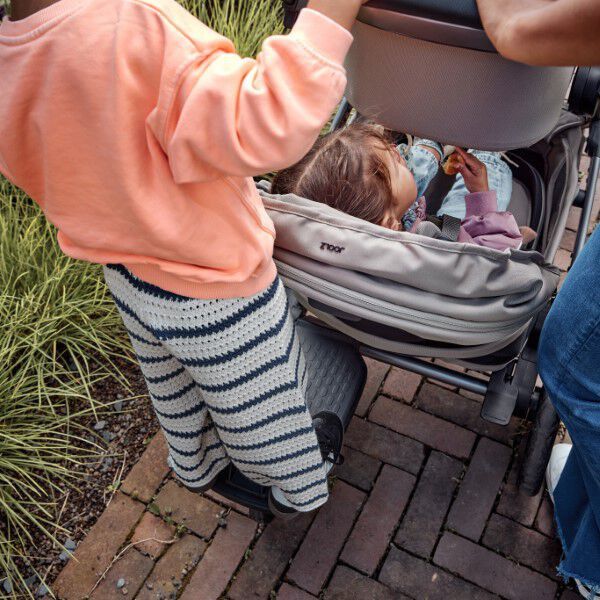 El patinete es compatible con el modelo Joolz Hub2, y destaca por ser resistente, amplio y se ajusta fácilmente al chasis. Este accesorio resulta ideal para llevar a dos niños a tus paseos, uno en el capazo o silla y el otro sobre el patín. Presenta un diseño inteligente que lo hace muy práctico porque no molestará al caminar ni impedirá el correcto manejo del cochecito. Incluye asiente. Simplemente engancha tu patinete al cochecito para disfrutar del paseo juntos.
