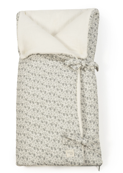 Saco arrullo o saco manta modelo Gala de Walking Mum ideal para las primeras semanas del bebé, fabricado con suave muselina 100% algodón. Es perfecto para los paseos en el capazo y además se convierte en una manta para la cuna. Práctico cierre a modo de sobre con lazos y con cremallera en la parte inferior para que el bebé esté bien abrigado. Medidas cerrado 38x73cm y abierto 97x73cm. TOG 2,5.
