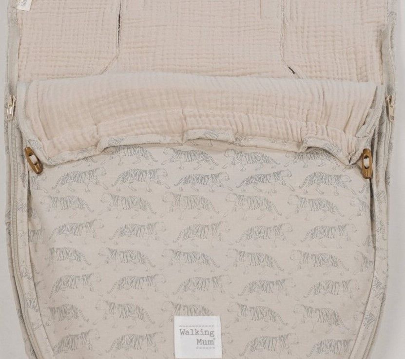 Saco cuco 2 en 1 entretiempo modelo Sabana de Walking Mum es un saco universal con funda que se adapta al cuco o capazo y portabebé. Lleva ojales y ajustes para que lo puedas usar en la mayoría de carritos. La parte interior es de suave muselina 100% algodón. La parte trasera lleva tejido transpirable que evita la sudoración excesiva y mantiene al bebé seco y calentito. El relleno es extraíble para una mejor limpieza.